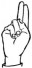 На ћирилици написано БОРИС ГОДОЧЕВИЋ састоји се из 14 слова [?]. Исписано ћириличном једноручном азбуком за глувонеме: